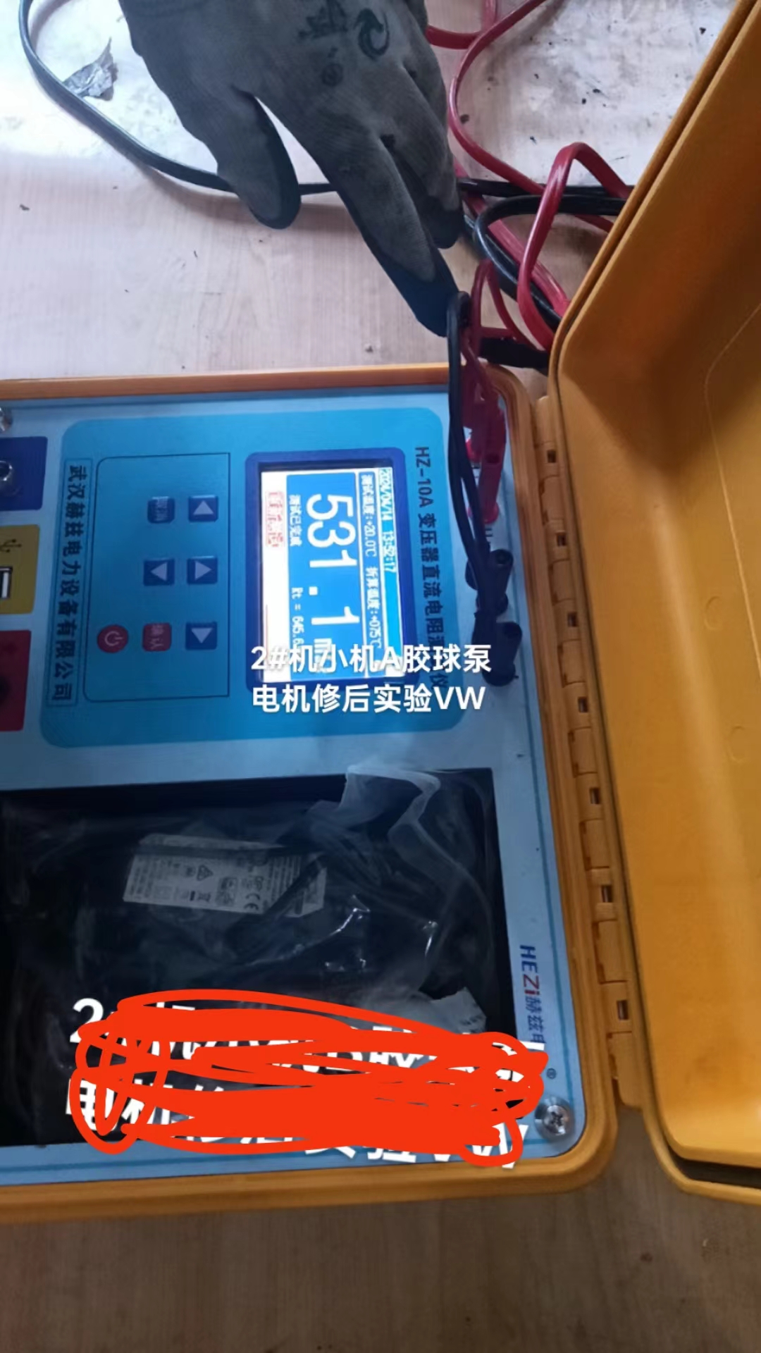 #2机小机A胶球泵电机直流电阻测试(U-V)