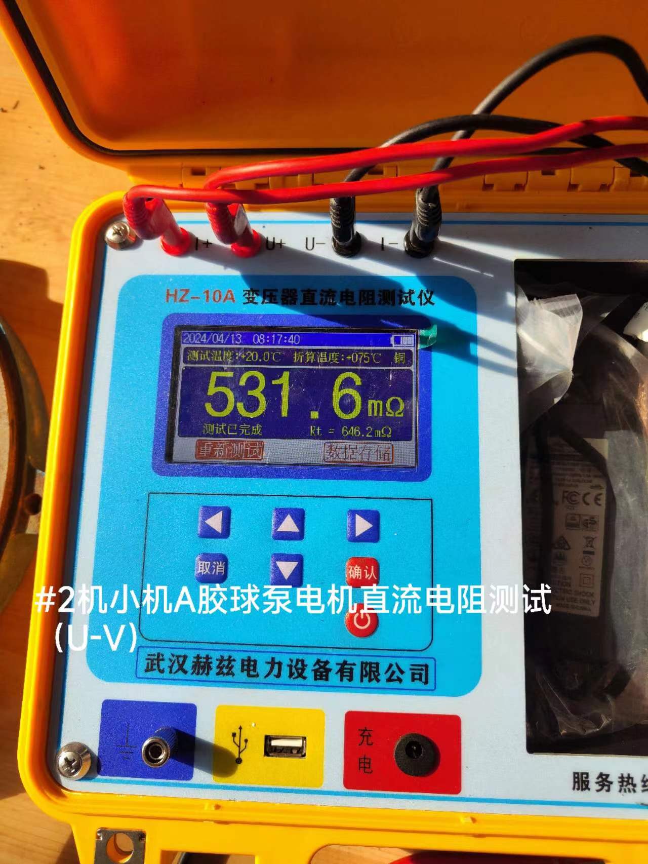 #2机小机A胶球泵电机直流电阻测试(U-V)
