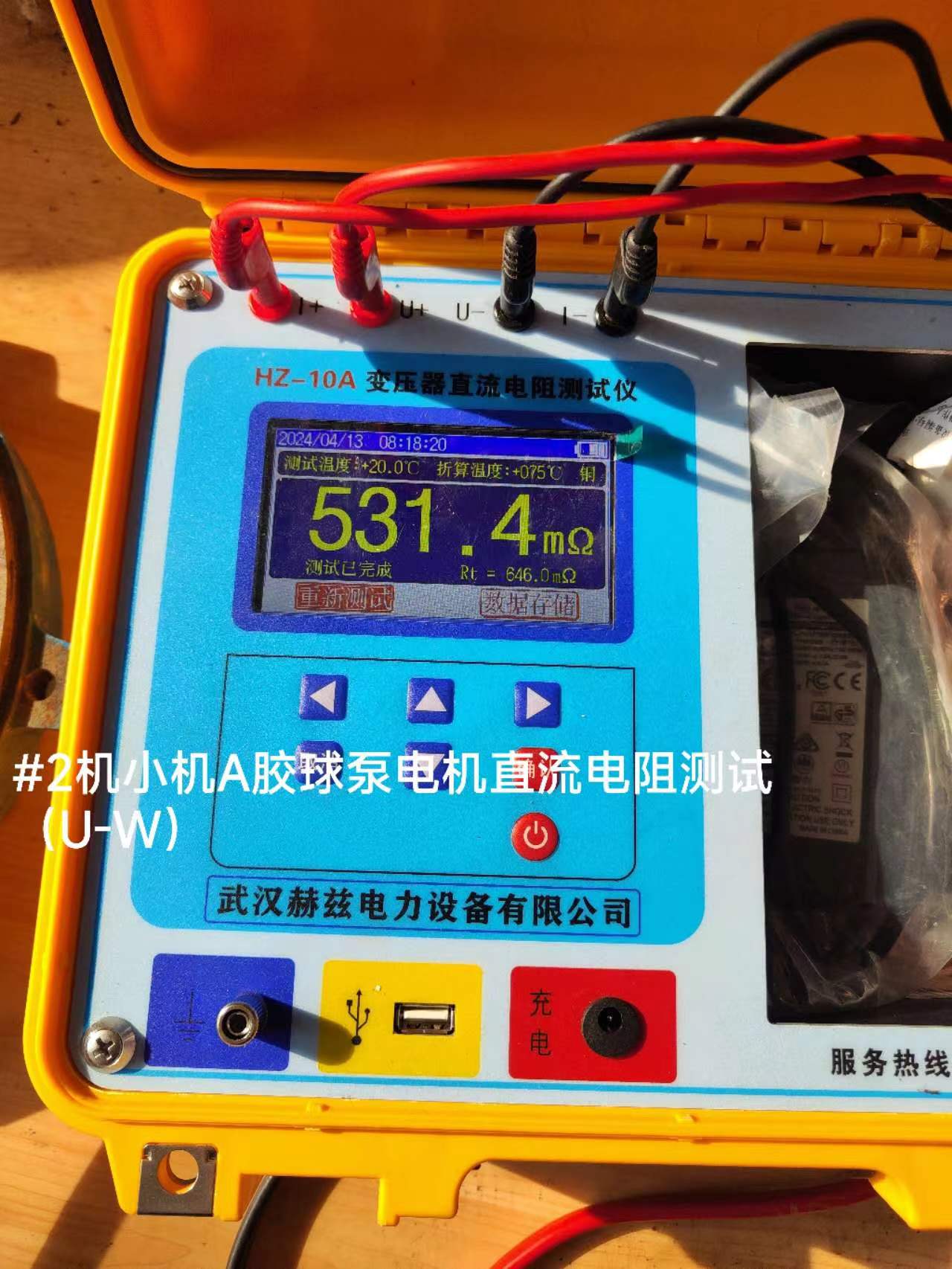 #2机小机A胶球泵电机直流电阻测试(U-W)