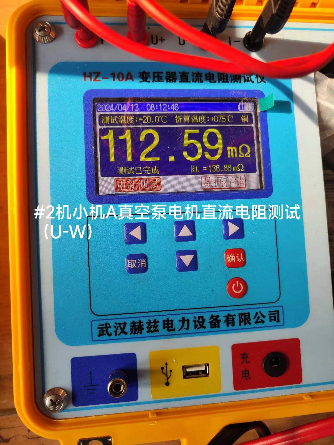 #2机小机A真空泵电机直流电阻测试(U-V)