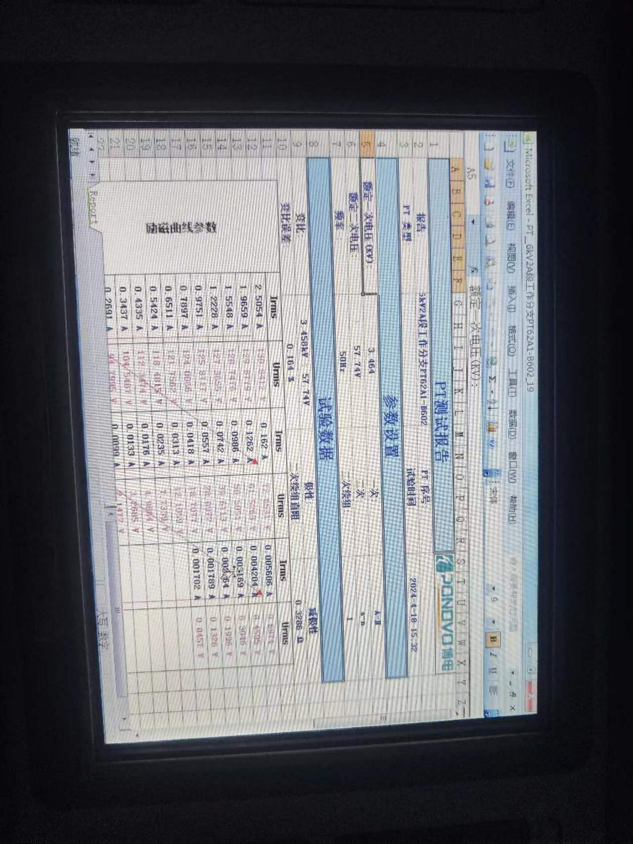 6kV2A段工作分支PT一、二次直阻,变比,极性,励磁特性,空载电流试验4