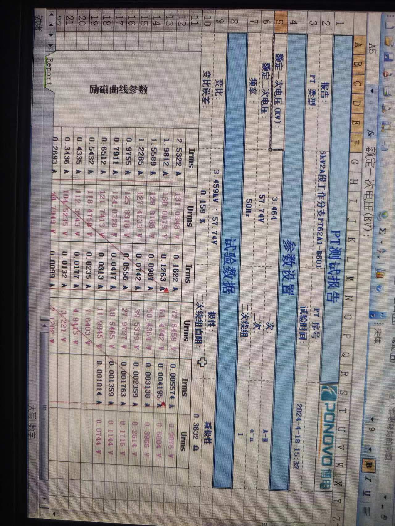 6kV2A段工作分支PT一、二次直阻,变比,极性,励磁特性,空载电流试验6