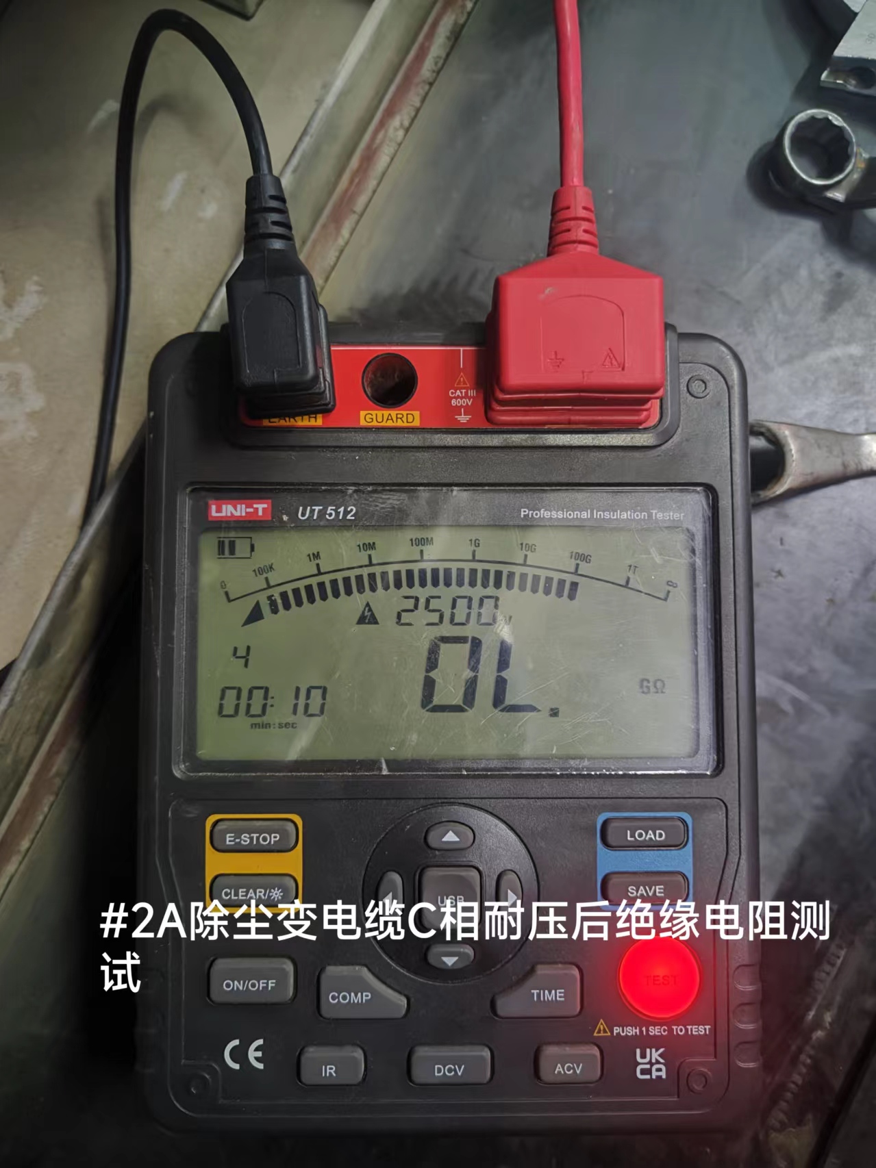 #2A除尘变电缆C相耐压前绝缘电阻测试