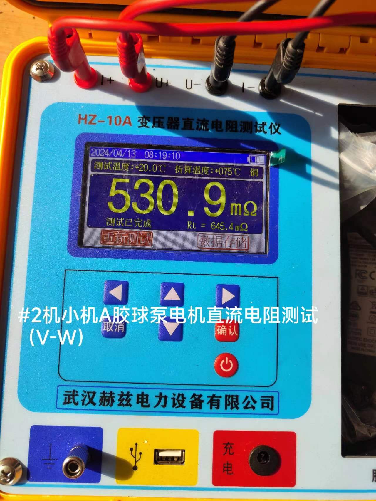 #2机小机A胶球泵电机直流电阻测试取消确认(V-w)