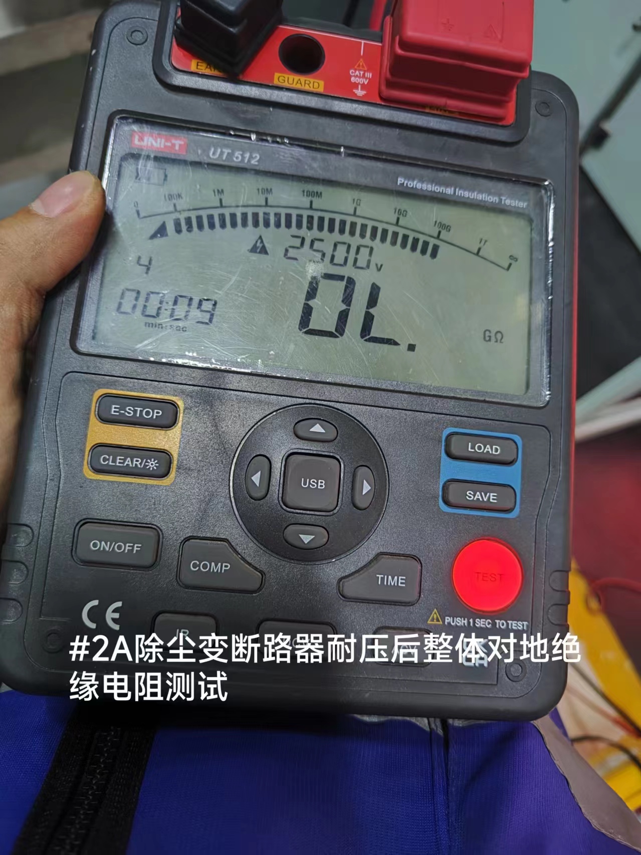 #2A除尘变断路器耐压后整体对地绝缘电阻测试