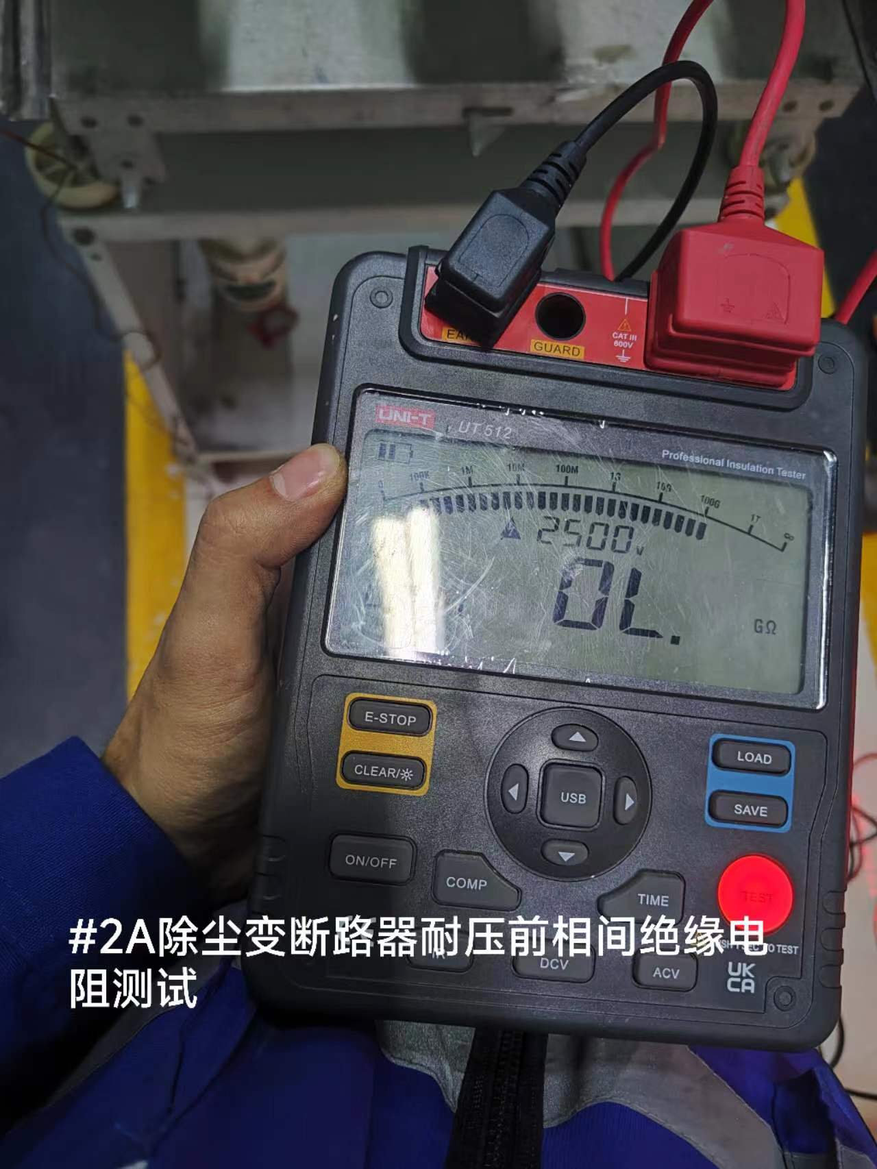 #2A除尘变断路器耐压前相间绝缘电阻测试