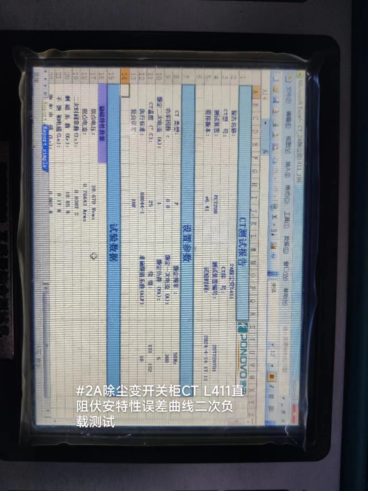 #2A除尘变开关柜CT L411变比极性直阻伏安特性误差曲线二次负载测试