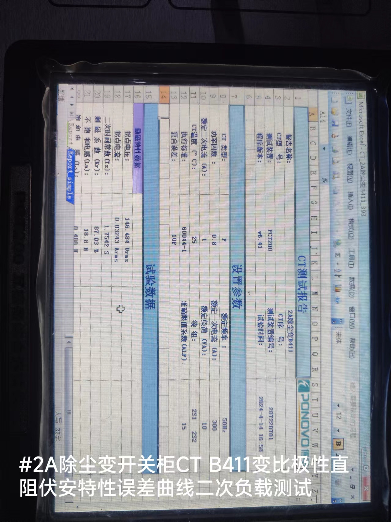 #2A除尘变开关柜CTB411变比极性直阻伏安特性误差曲线二次负载测试