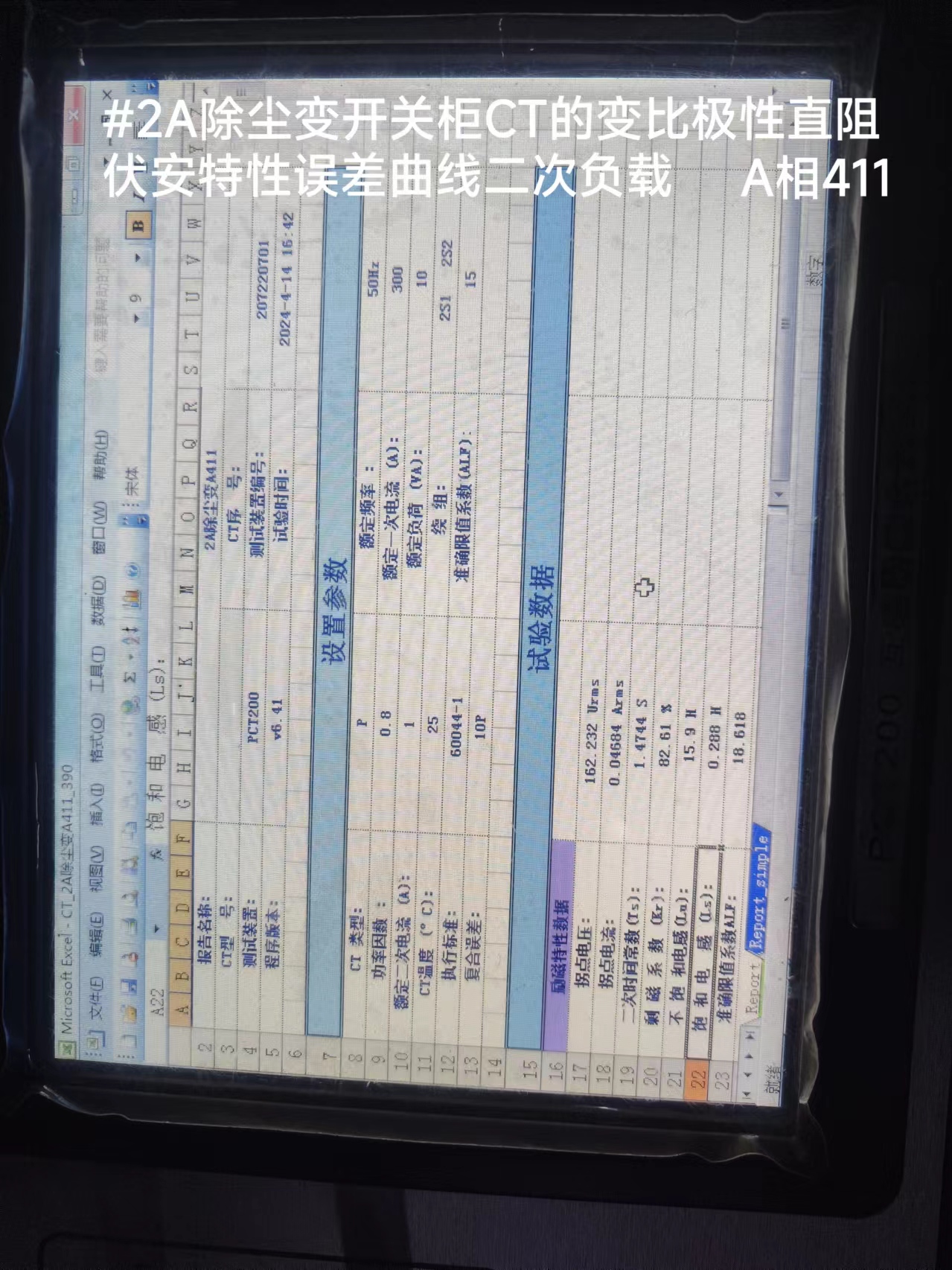 #2A除尘变开关柜CT的变比极性直阻伏安特性误差曲线二次负载 A相411